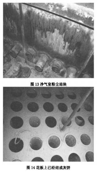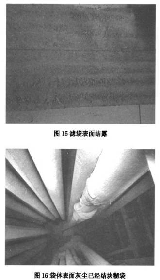 由于“四管爆裂”現(xiàn)象,導(dǎo)致水分進入除塵器,造成濾袋表面結(jié)露、糊袋現(xiàn)象。