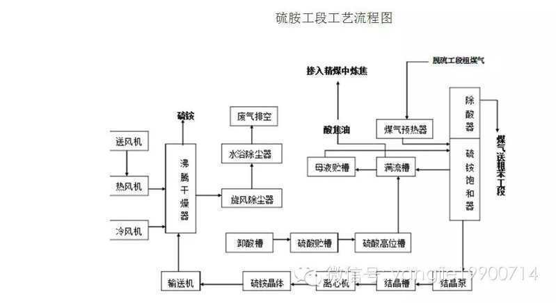 在飽和器的母液中不斷有硫銨晶體生成,用結晶泵將其連同一部分母液送至結晶槽分離,然后經離心機分離、螺旋輸送機輸送至振動流化床干燥器干燥后入硫銨貯斗貯存、稱重、包裝后外售。
