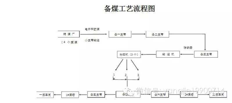 煉焦所用精煤,一方面由外部購入,另一方面由原煤經洗煤后所得,洗精煤由皮帶機送入精煤場。精煤經受煤坑下的電子自動配料稱將四種煤按相應的比例送到帶式輸送機上除鐵后,進入可逆反擊錘式粉碎機粉碎后(小于3mm占90%以上),經帶式輸送機送至焦爐煤塔內供煉焦用。
