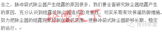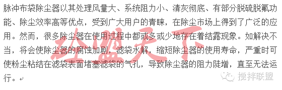 脈沖布袋除塵器結露現象原因分析及解決辦法