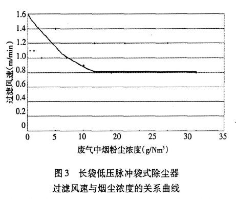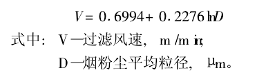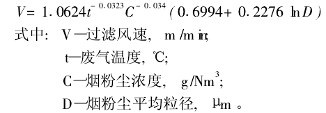 該式雖是通過曲線擬合得到的,但我們在2005年后設(shè)計(jì)脈沖除塵器時,其過濾風(fēng)速的選取均是采用該模式計(jì)算,每臺除塵器的除塵效果都達(dá)到了要求(除塵效率達(dá)到99.9%或排放口濃度小于30g/Nm3)。