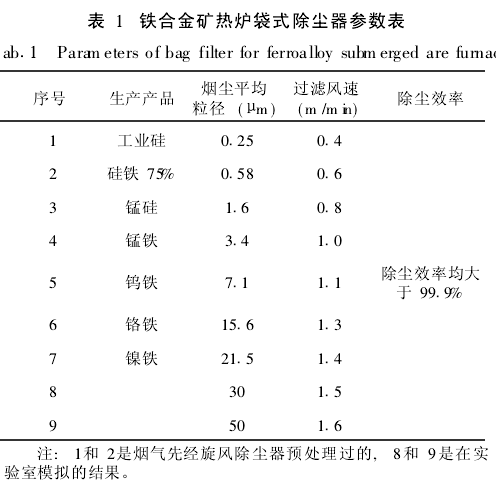 過濾風(fēng)速到底和廢氣溫度、煙粉塵濃度有何具體關(guān)系,我們可從實(shí)驗(yàn)上加以研究,表2是作者為各行業(yè)設(shè)計(jì)的除塵器的工作參數(shù)表(僅選取了除塵效率在9919%以上的設(shè)備或出口排放濃度小于30mg/Nm3的設(shè)備)。