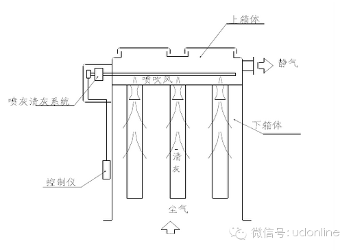 圖1脈沖袋式除塵器基本構造及工作原理