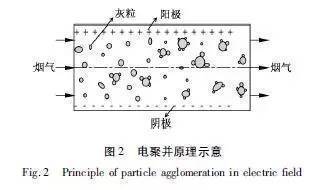 電聚并是各聚并技術(shù)中好實(shí)用有效的方法。電聚并是通過(guò)細(xì)顆粒荷電,促使細(xì)顆粒相互吸引、碰撞、聚并,使細(xì)顆粒團(tuán)聚成大顆粒。電聚并的效果取決于粒子的濃度、粒徑、電荷的分布以及外電場(chǎng)的強(qiáng)弱(圖2)。
