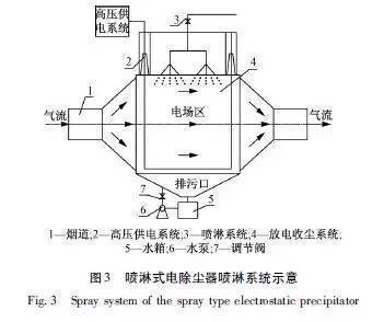 濕式電除塵技術(shù)與干法靜電除塵技術(shù)對(duì)粉塵捕集的原理基本相同,兩者結(jié)構(gòu)也類(lèi)似。所不同的是清灰方式,濕式除塵器取消了傳統(tǒng)的機(jī)械振打清灰方式,通過(guò)煙氣與水接觸使飛灰沉降。根據(jù)濕式除塵器原理和結(jié)構(gòu)的不同,有自激式除塵、麻石水膜除塵、噴淋式除塵三種主要形式。