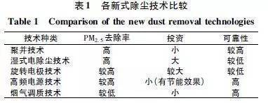 各新式除塵技術(shù)比較見(jiàn)表1。