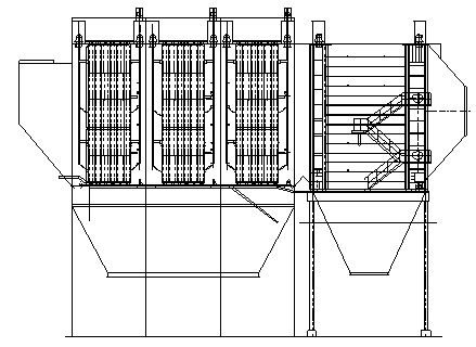 6)新增電場(chǎng)采用鋼支架支撐,延長(zhǎng)灰斗檢修平臺(tái)并加長(zhǎng)拉鏈機(jī)。